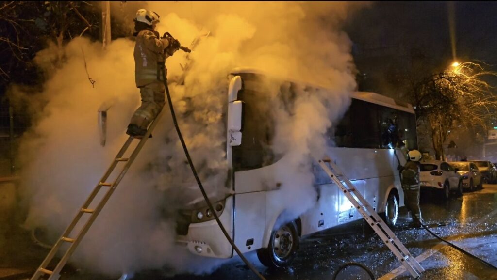 Yangın, saat 21.00 sıralarında Acıbadem Mahallesi Şehit Emin Çölen Sokak’ta çıktı. Sokakta park halindeki midibüste çıkan yangını fark edenlerin ihbarı